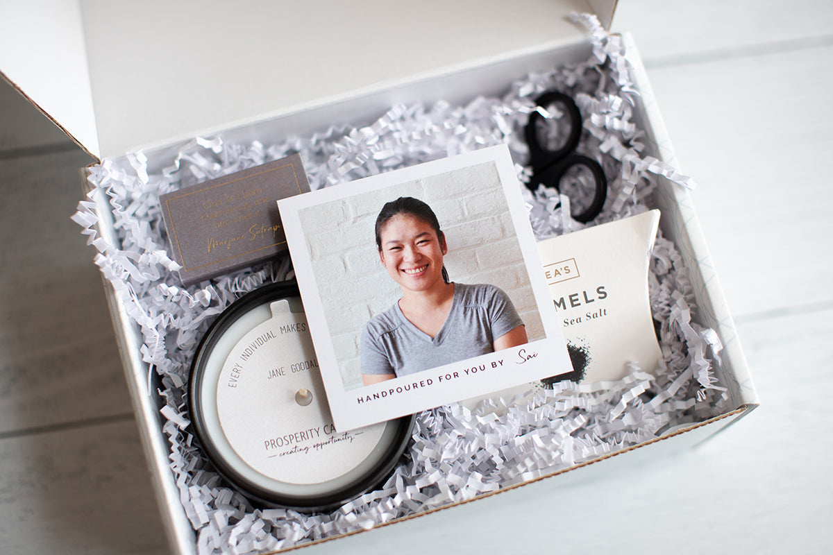 Each candle is handmade by a woman artisan building a brighter future in the U.S. after living for years as a refugee.