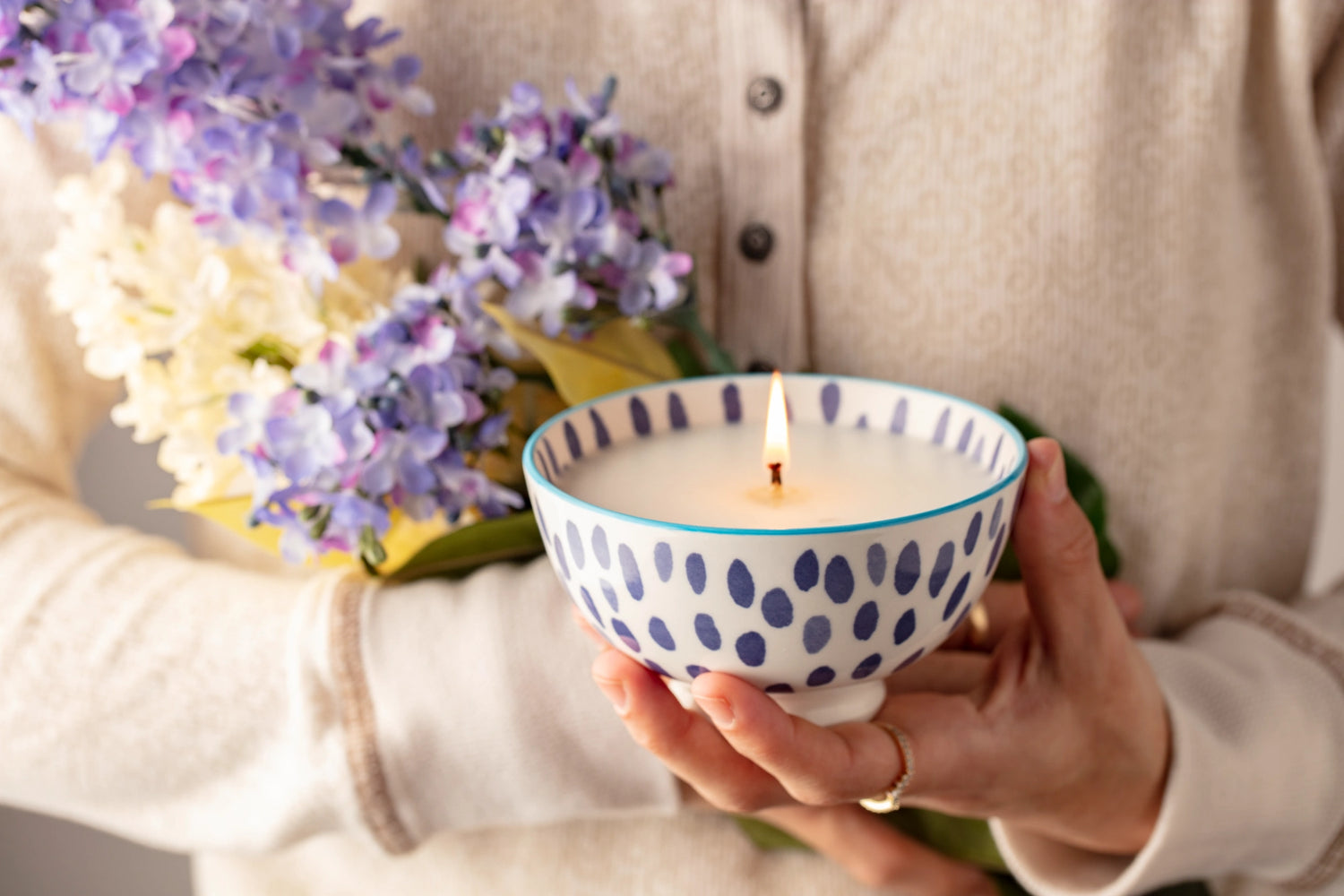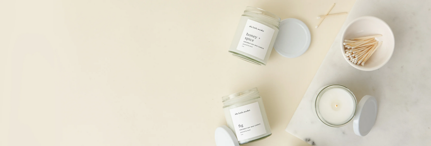 Renewable coconut-soy wax, natural cotton and wood wicks, and premium fragrance made with essential oils. Never any dyes or enhancers.