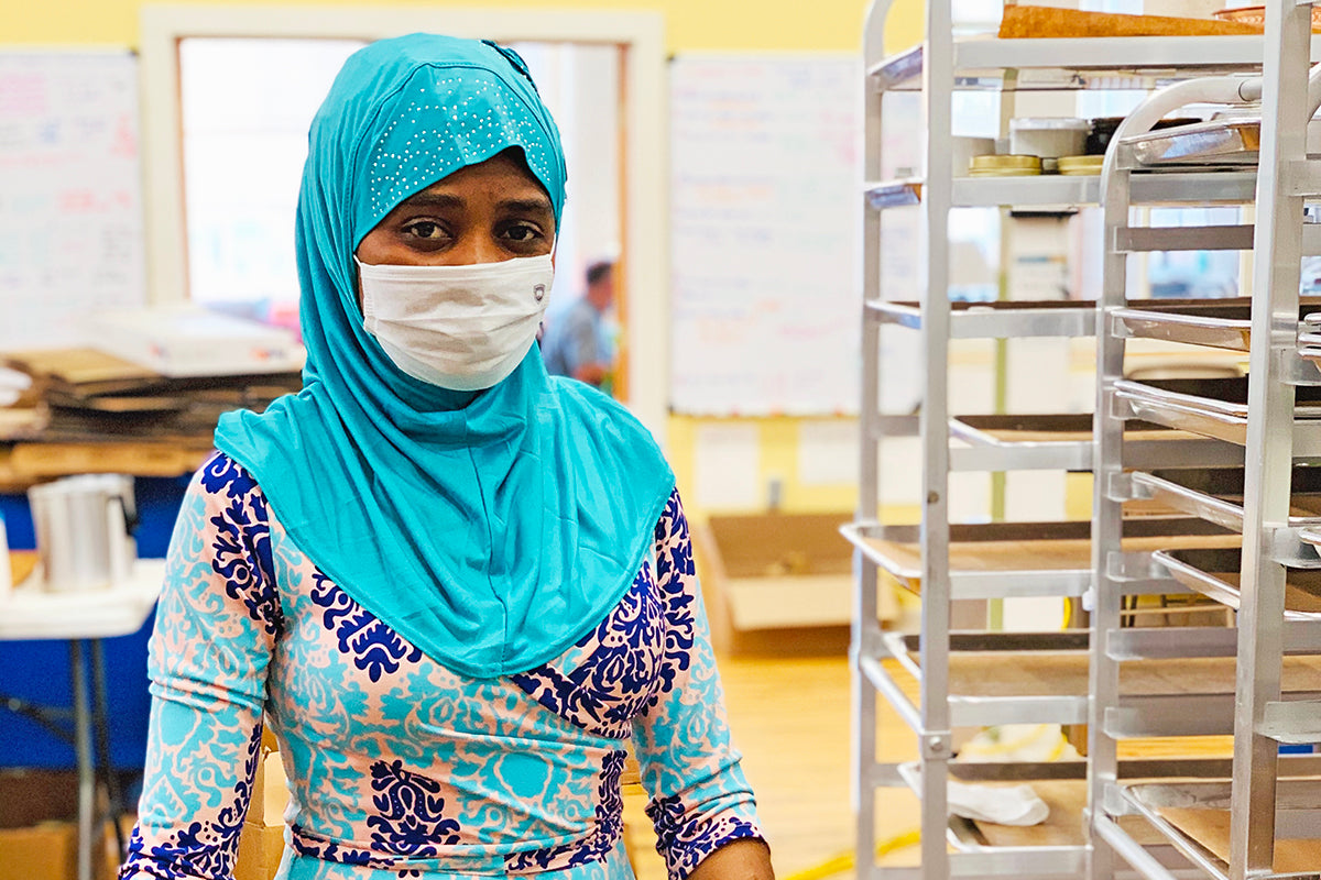 Today we make candles, spa products, gift sets and more in a beautiful sunlit studio, employing women artisans building a brighter future in the U.S. after living for years as refugees, and supporting refugee families around the world.
