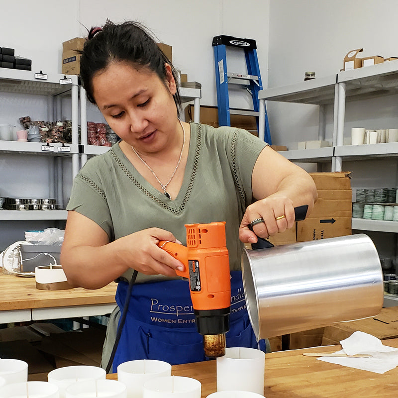 As a company that supports refugees, today most of our candles are handmade in the U.S. by women artisans who lived for many years as refugees, and are now earning a living wage as candlemakers.
